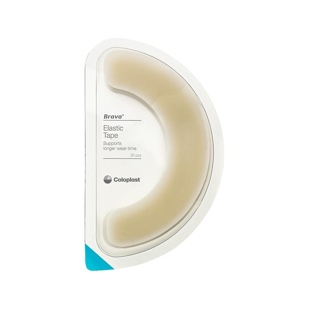 Brava arco de sujeción elástico evita que se levanten los bordes del disco adhesivo previniendo fugas y asegurando una buena fijación de este al abdomen.